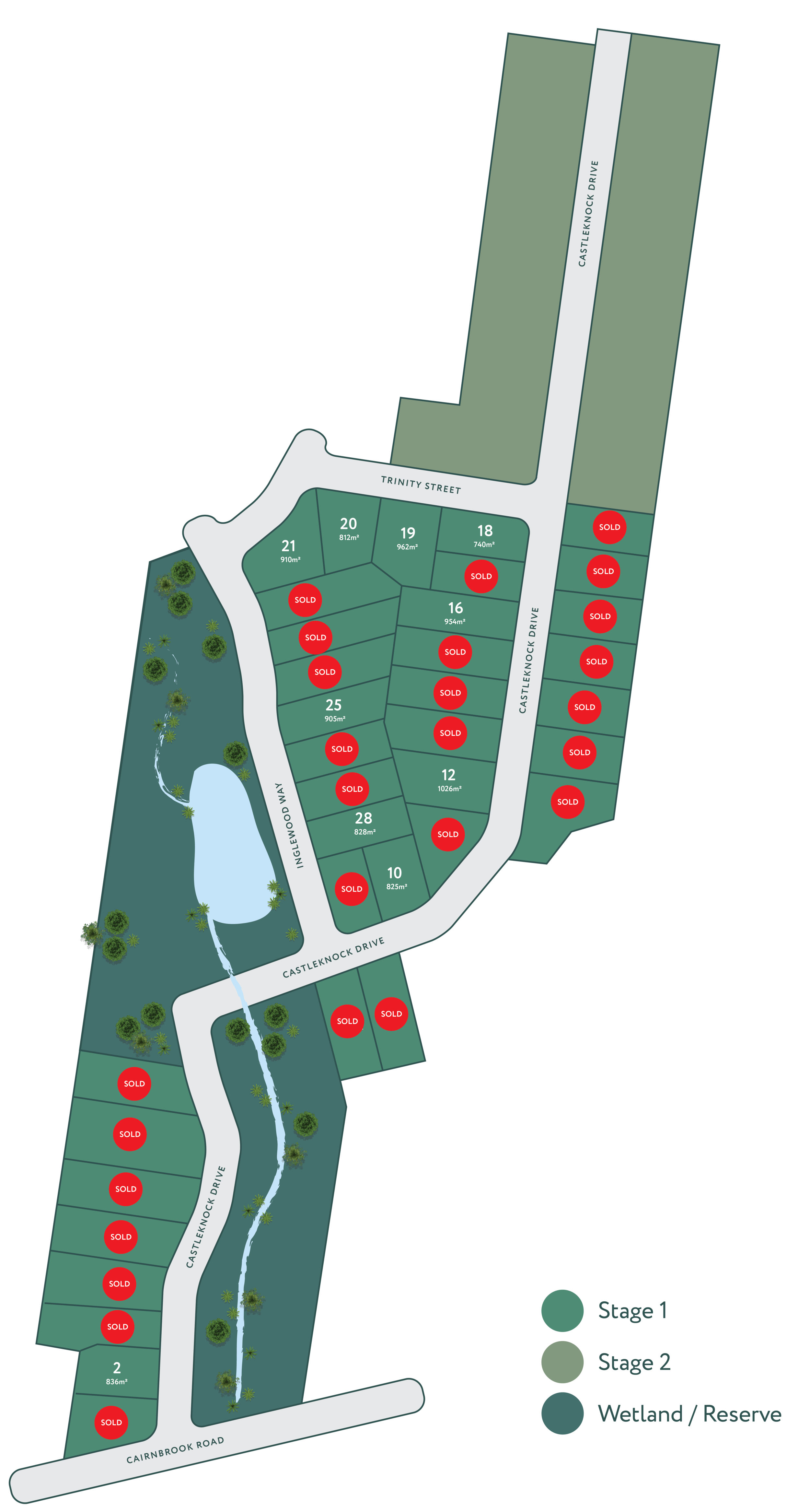 23 Residential lots sized from 715m²to 899m²